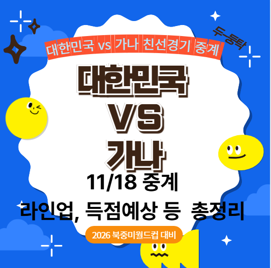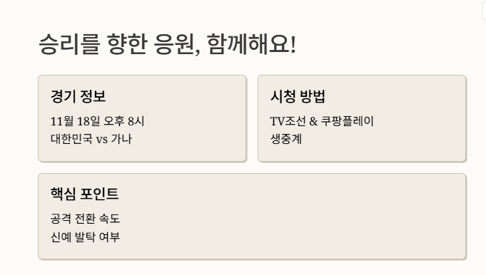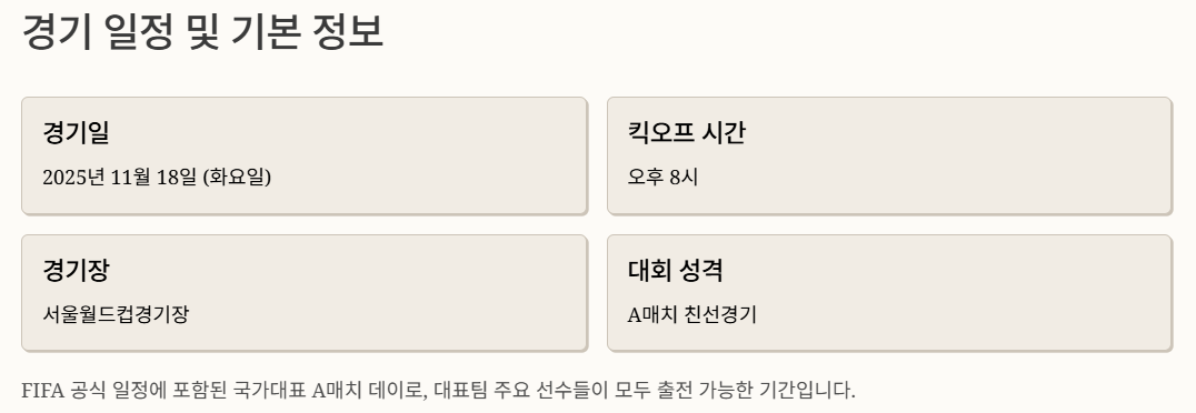 - ✅ 11월 18일 오후 8시, 대한민국 vs 가나 축구 국가대표 평가전