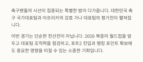 이번 포스팅에서는 대한민국 vs 가나 축구 경기 중계 정보, 시청 방법, 라인업 정보, 관전 포인트, 응원 팁까지