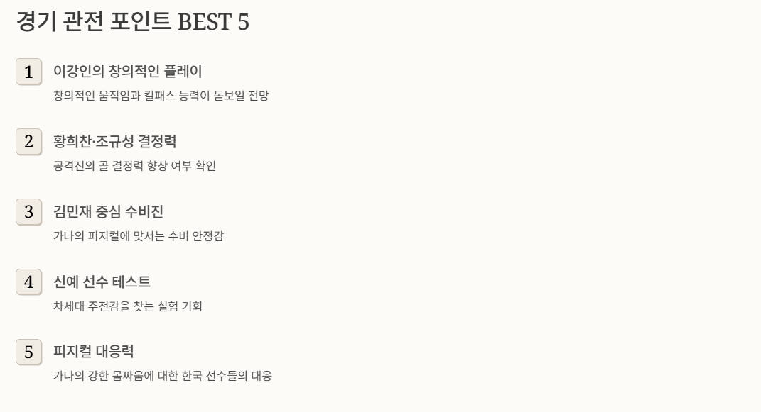 🔍 경기 관전 포인트 BEST 5
