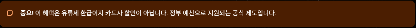 ⚠️ 유류세 환급은 일반 카드로는 적용 불가, 반드시 전용카드 사용해야 함
