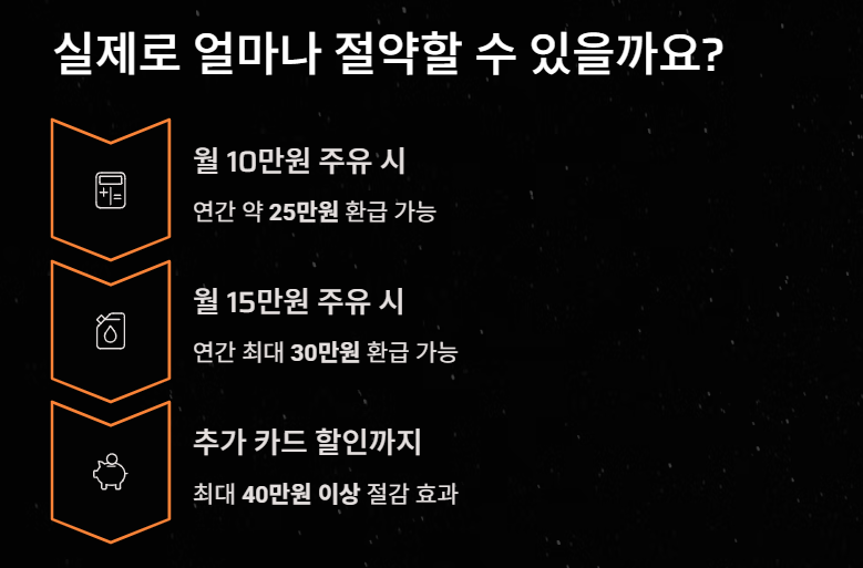 - ✅ 혜택: 연 최대 30만 원 주유비 환급