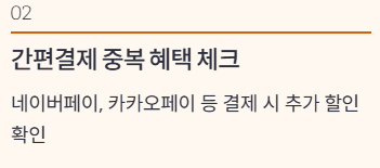 - 간편결제+카드 중복 체크: 네이버페이, 카카오페이 등 간편결제 사용 시 카드 혜택 중복 가능성 있음