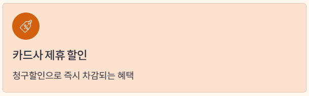 | 청구할인 | 카드 결제 시 청구서에서 즉시 할인. 예: % 할인 또는 금액 할인. |