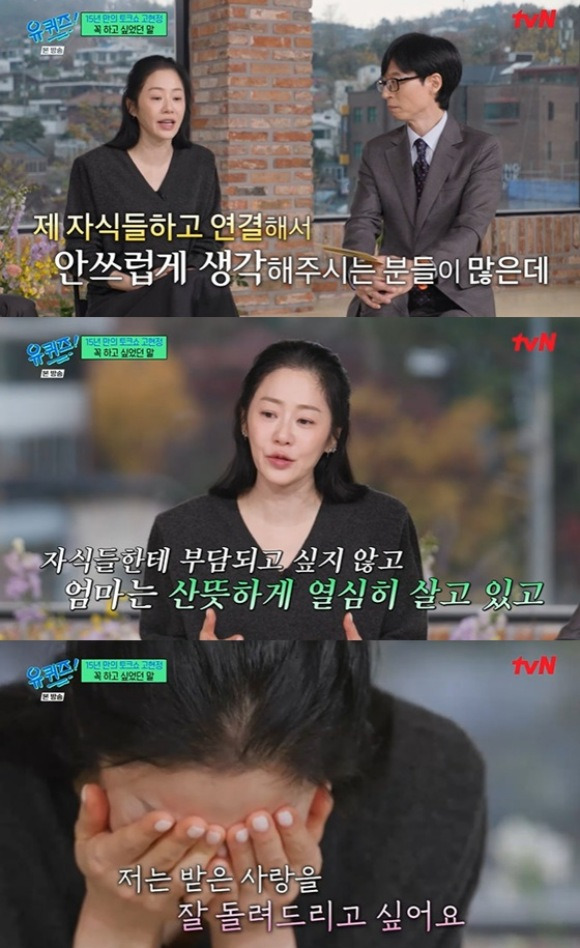 방송 중 고현정은 자녀에 대한 이야기를 하면서 눈물을 보였어요. 그녀는 "친하지 않은 것이 이렇게 슬픈 일인지 몰랐다"며, 자녀와의 관계에 대한 아쉬움을 표현했답니다. 이 순간은 많은 시청자들에게 깊은 감동을 주었고, 고현정의 진솔한 감정이 그대로 전달되었어요.