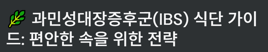 - 변비 또는 설사 위주 IBS 상태에 따라, 같은 음식이라도 반응이 달라서 자기 체질에 맞춰 시도해야 합니다.