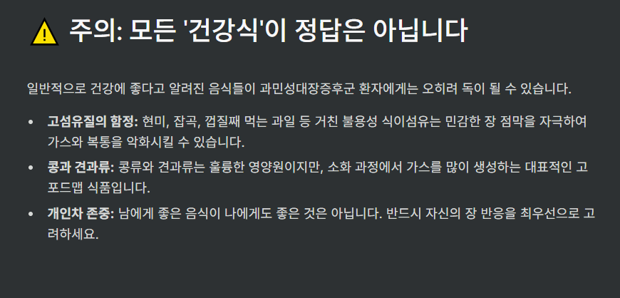 ⚠️ 주의 — 모든 섬유질·건강식이 통하는 건 아니에요