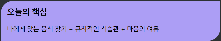 | ✅ 규칙적인 식사 습관 유지 | 식사 시간 일정, 천천히 먹기, 과식/야식 피하기 |