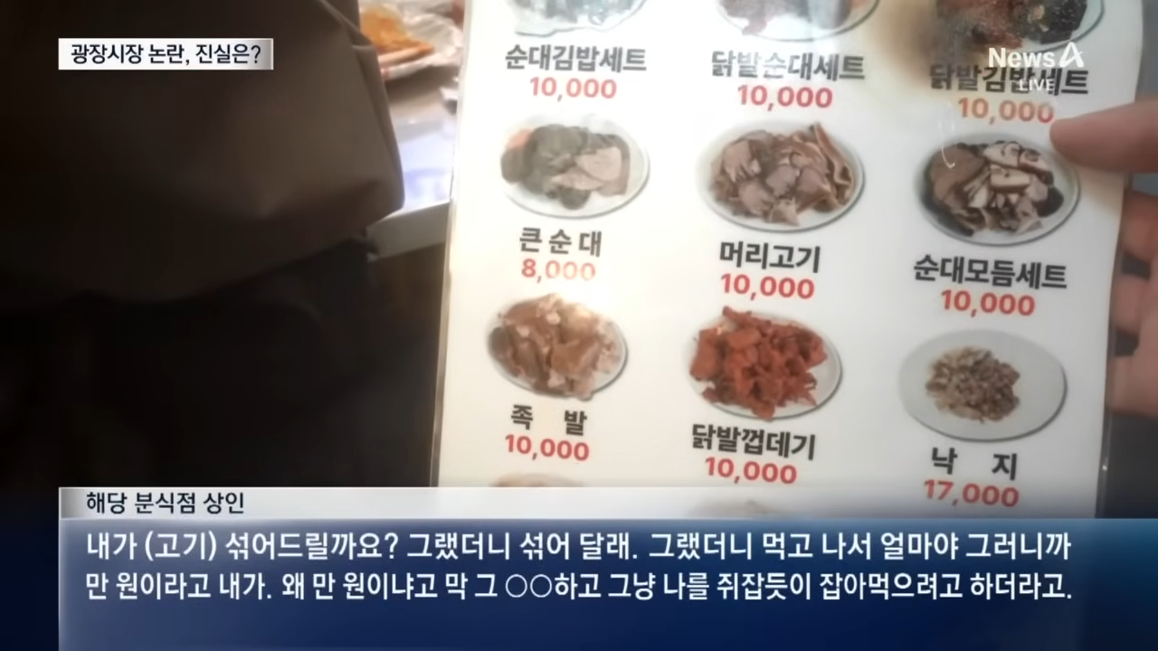 - 최근 유튜버 이상한과자가게가 광장시장의 먹거리 노점들을 취재한 영상에서 “순대 가격표엔 8천 원인데 실제 결제금액은 1만 원”이라는 폭로가 나왔습니다.