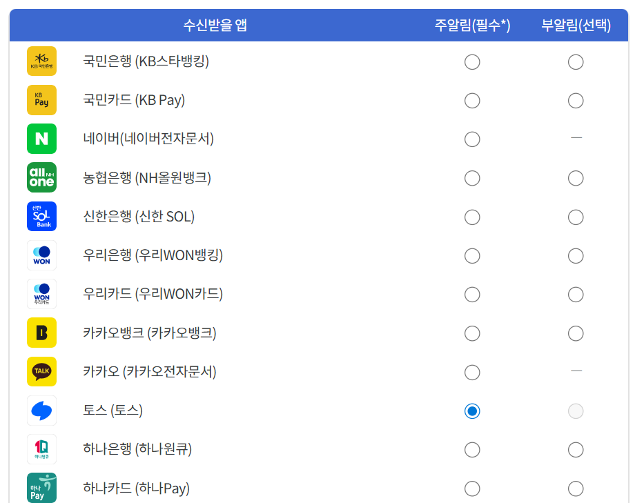 - 추후 세금 납부, 여권 만료 알림 등도 함께 선택 가능