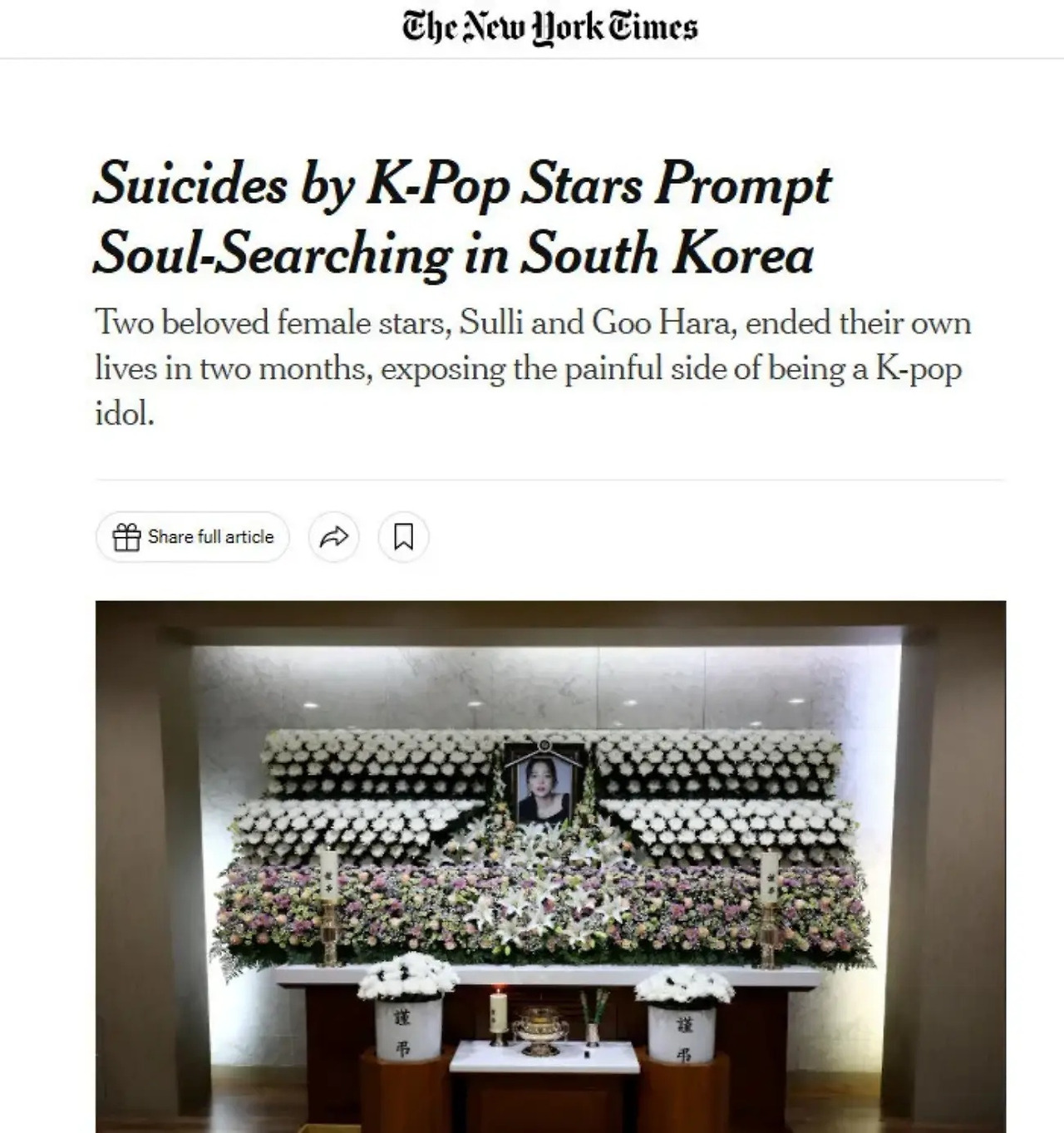 김새론의 사망 소식은 국내뿐만 아니라 해외에서도 큰 화제가 되었어요. 외신들은 그녀의 죽음을 보도하며 한국 연예계의 극심한 압박과 완벽함을 요구하는 문화에 대해 비판적인 시각을 보였습니다. 특히 뉴욕타임스 는 김새론의 사건을 과거의 유명인사들과 비교하며, 대중의 집중적인 관심과 악성 댓글이 이와 같은 비극적인 결과를 초래할 수 있다고 지적했어요.
