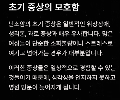 초기에는 일반적인 위장장애, 생리통, 과로 증상과 헷갈려