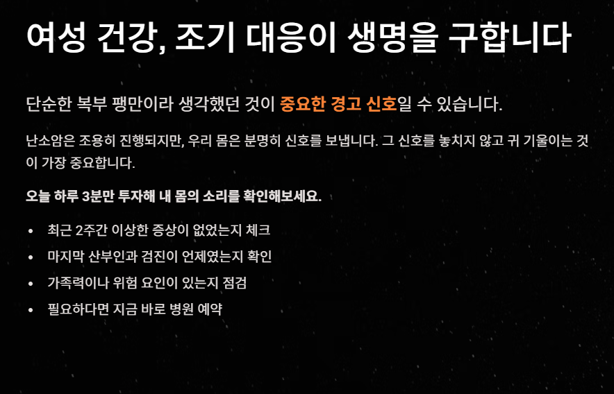 👩⚕️ 여성 건강은 조기 대응이 핵심입니다.