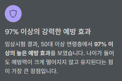 - Shingrix는 임상시험에서 평균 97% 이상의 예방 효과를 보였고, 나이(50대 이상)에 관계없이 높은 예방력을 유지하는 것으로 보고되었습니다.