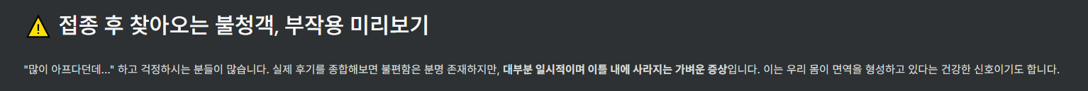 백신 후 부작용이 불편하더라도 예방 효과 & 후유증 방지의 이점이 더 크다는 점이 실제 후기를 통해 확인됩니다.