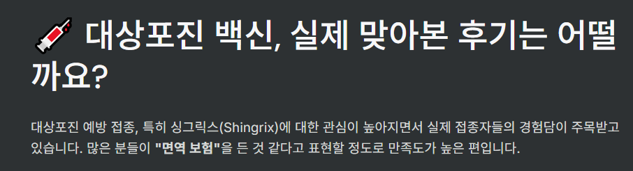 💉 대상포진 백신, 실제 맞아본 후기는 어떨까?