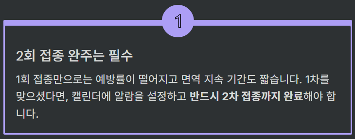 - 가능하면 1차 맞았다면 꼭 2차까지 완료하는 것이 좋습니다.
