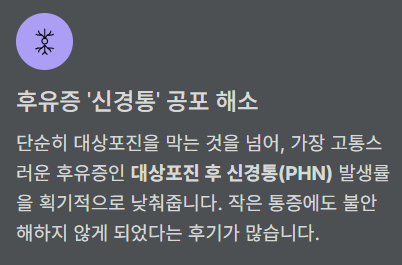 | 예방 만족도 | “대상포진 안 걸릴 거라는 확신 가지게 됐다”, “후유증 불안감 사라졌다” 는 긍정적 후기 다수 |