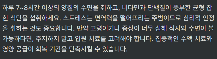 - 증상이 심하면 입원치료를 고려할 수 있어요.