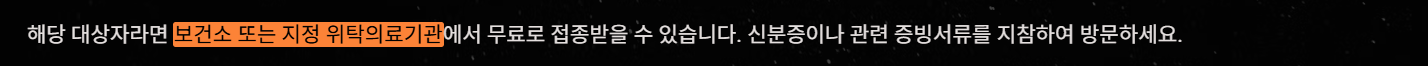- 무료 대상자면 → 보건소나 지정 병원에서 무료 접종 가능