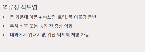 - 등 가운데가 아프면서 속쓰림, 트림, 목 이물감 동반