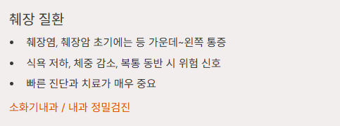- 식욕 저하, 체중 감소, 복통 동반 시 위험 신호