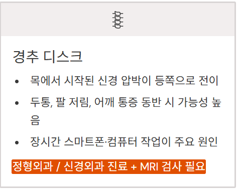 - 🏥 정형외과 / 신경외과 진료 + MRI 검사 필요