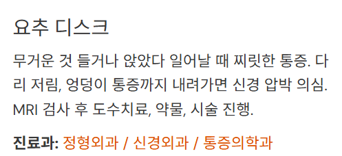 - 무거운 것 들거나 앉았다 일어날 때 찌릿한 통증