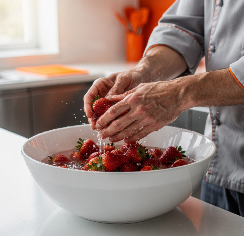 흐르는 물에 30초 이상 세척하거나, 식초물에 담갔다 헹구는 방법이 추천됩니다.