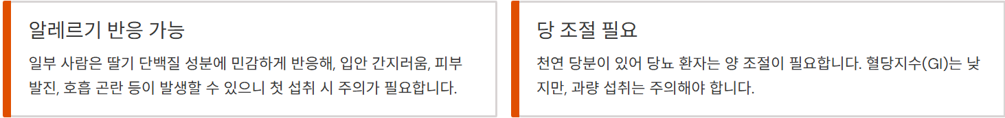 입안 간지러움, 피부 발진, 호흡 곤란 등이 발생할 수 있으니 첫 섭취 시 주의해야 합니다.