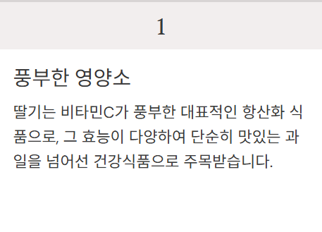 딸기의 풍부한 비타민C는 감기 예방, 피로 회복, 염증 완화에 도움을 줍니다.