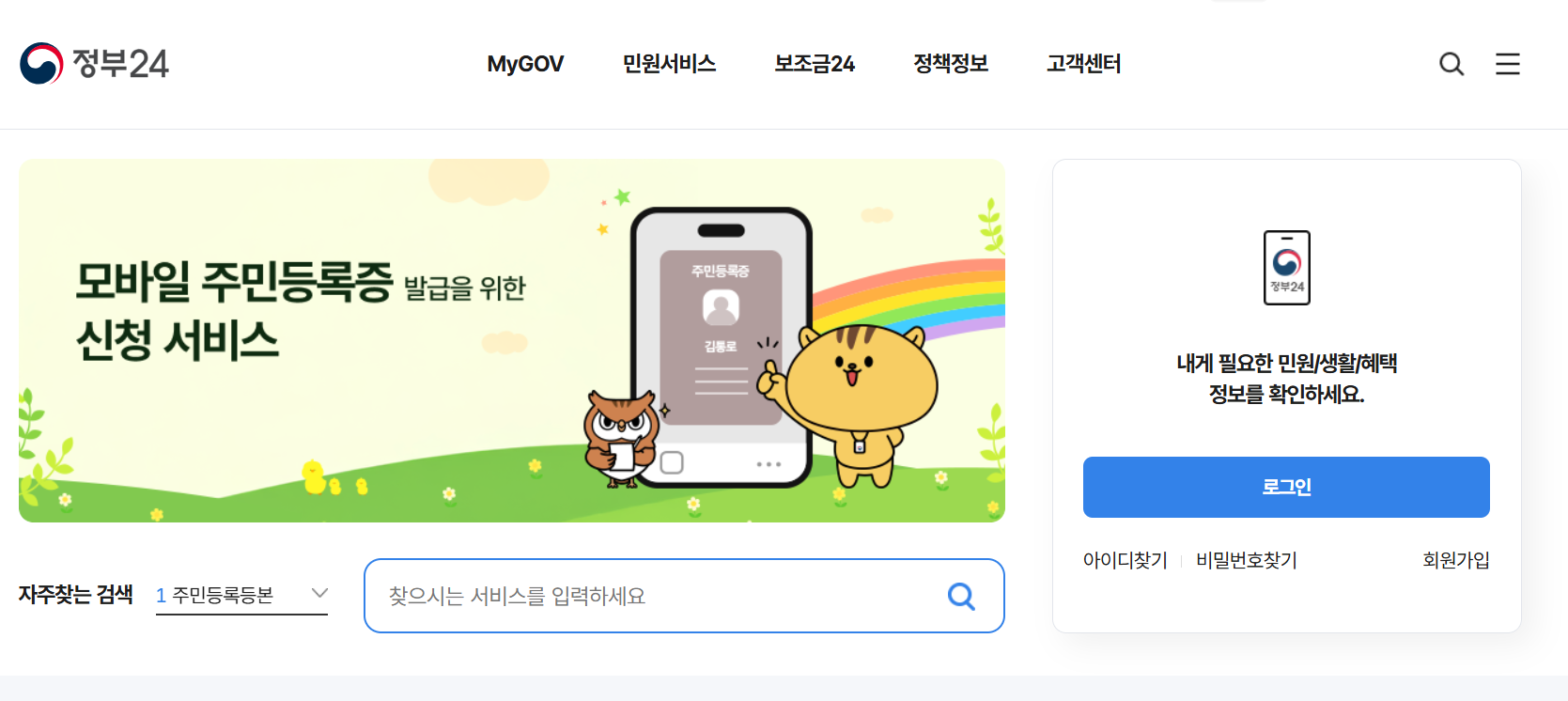 - 정부24 → 주민등록등본 + 가족관계증명서