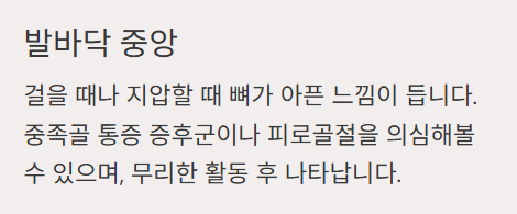 - 걸으면 아프고, 지압할 때 뼈가 아픈 느낌