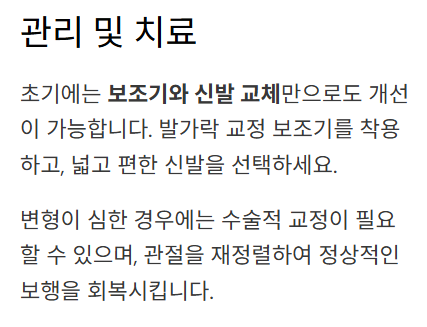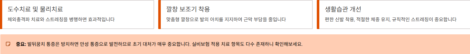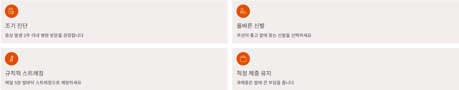 - 찜질과 스트레칭, 편한 신발 착용으로 증상 완화