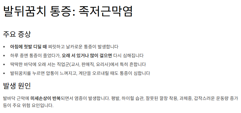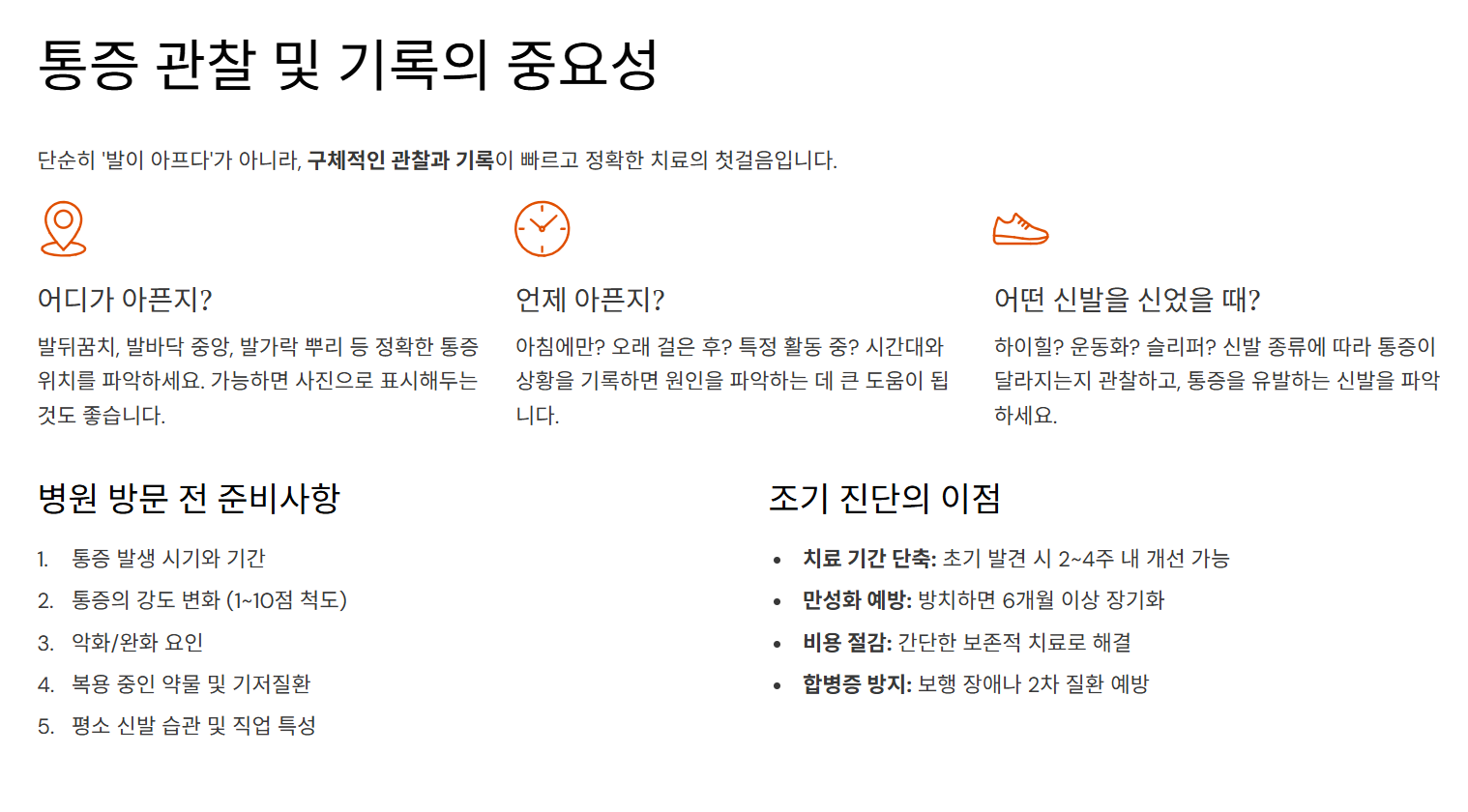 💬 “어디가 어떻게 아픈지?”, “언제 아픈지?”, “어떤 신발을 신었을 때 아픈지?”