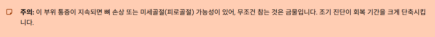 📍 이 부위 통증이 지속되면 뼈 손상 또는 미세골절 가능성이 있어, 무조건 참는 것은 금물입니다.