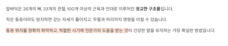 단순히 ‘발이 아프다’가 아니라,
