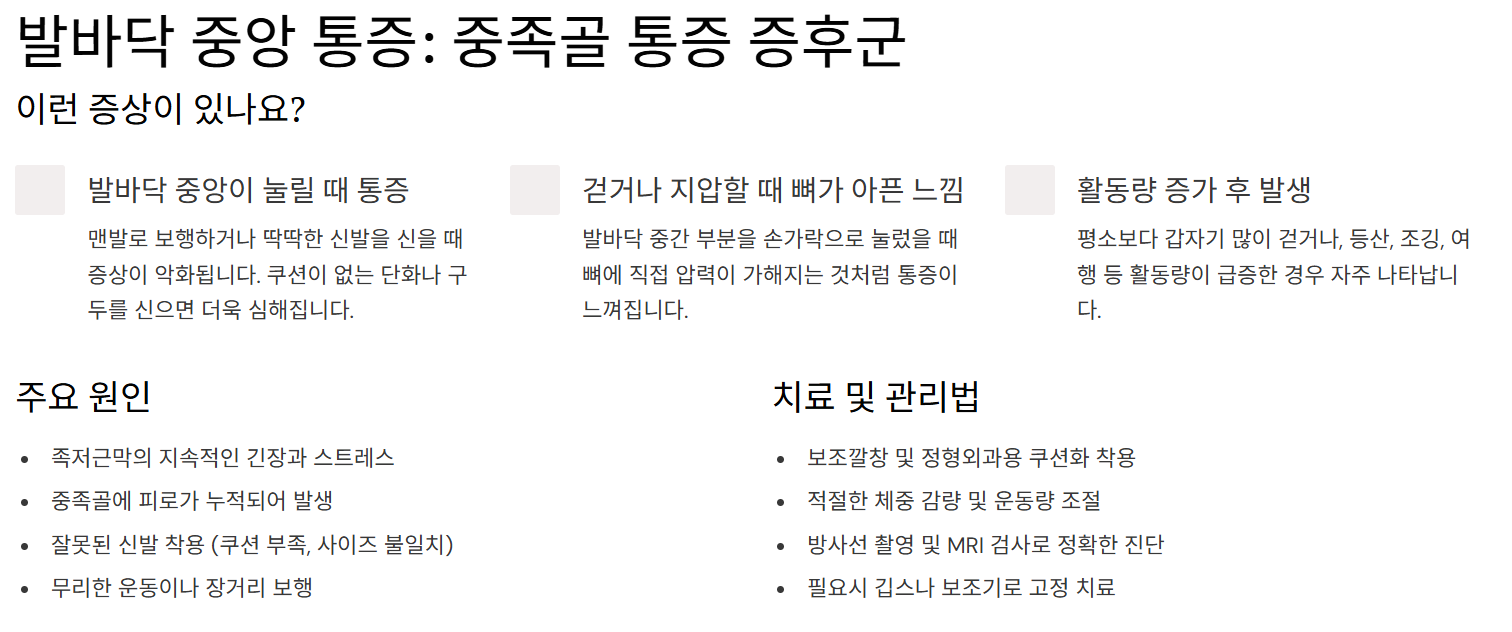 📌 의심 질환: 중족골 통증 증후군 / 피로골절