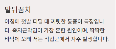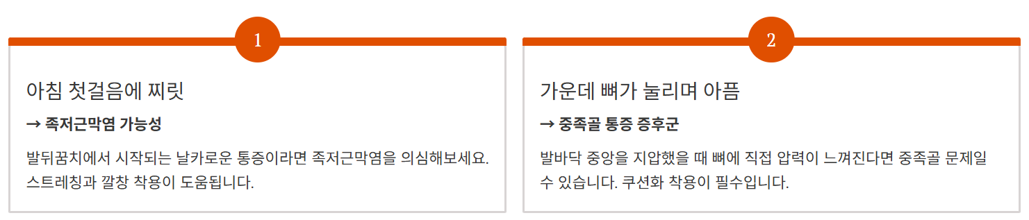 - 아침 첫걸음에 찌릿 → 족저근막염