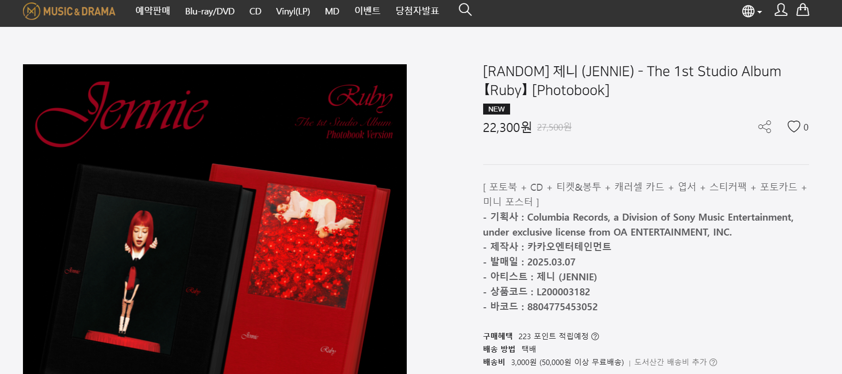 제니 정규 첫 앨범 '루비'
