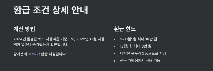 • 증가분의 **20%**를 → 디지털 온누리상품권으로 환급 - 환급 한도 (12월): 최대 3만 원까지