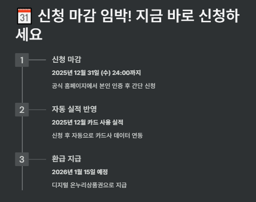 - 12월 소비분 환급 지급은 2026년 1월 15일 예정