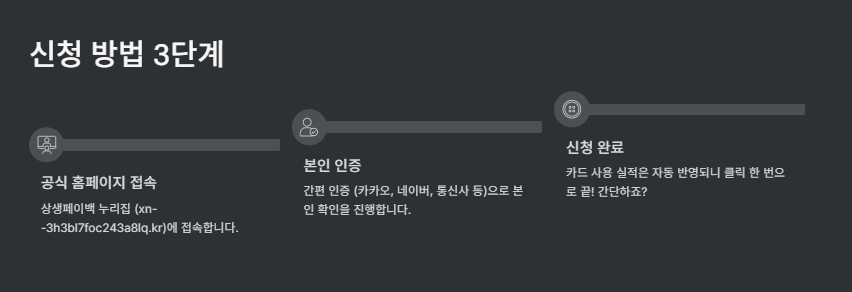- 신청 방법: 공식 홈페이지에서 본인 인증 후 간단 신청 → 카드 사용 실적 기준으로 자동 반영