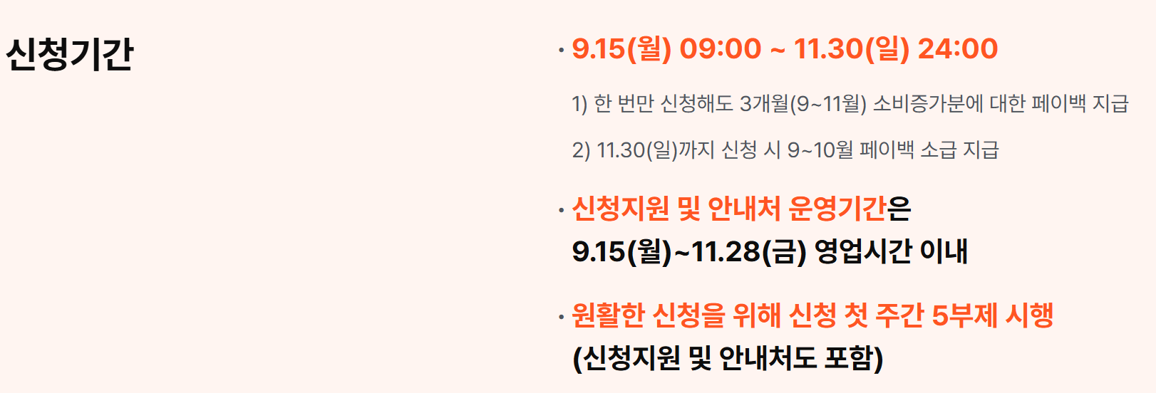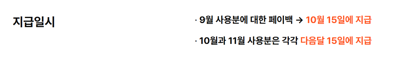 | 환급 지급일 | 신청한 달 다음 달 15일 부터 순차지급 | 예: 9월 소비분 → 10월 15일부터 지급 |