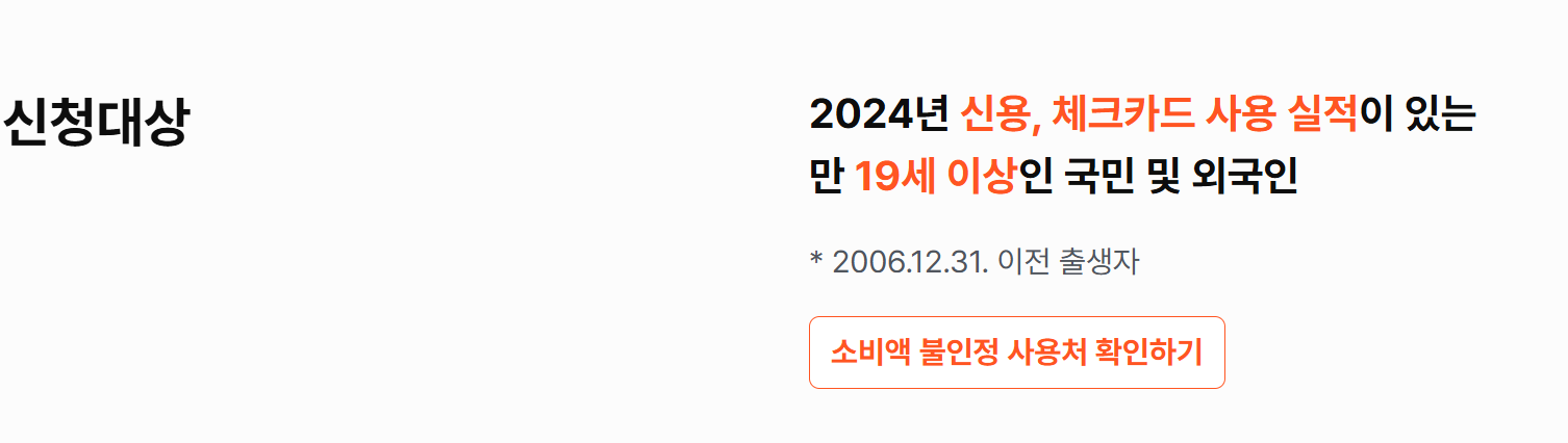 - 2024년에 카드(신용+체크) 소비 실적이 있어야 함.