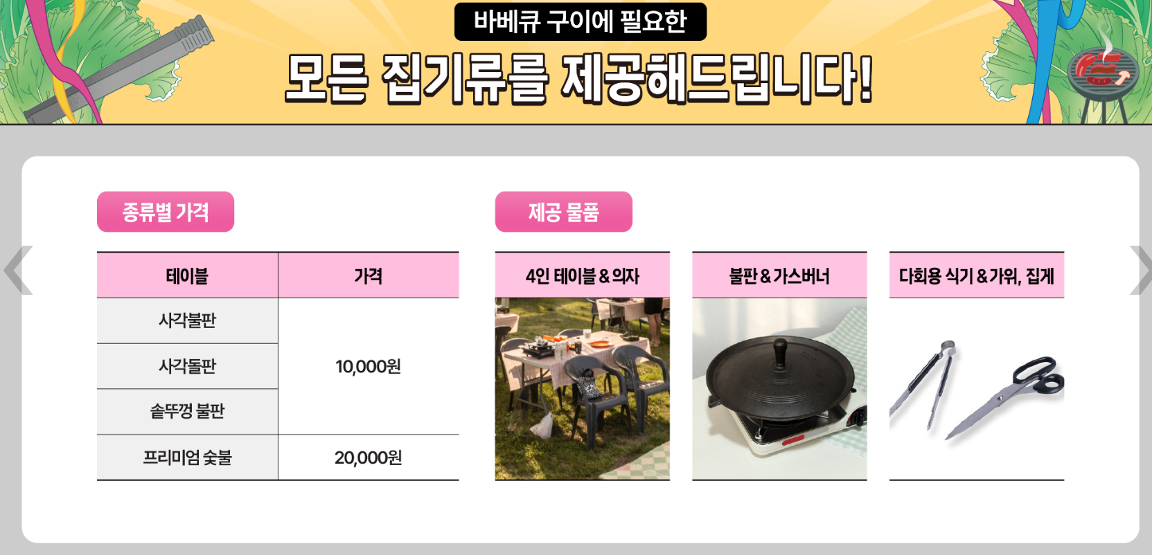 | 준비물 | 개인 돗자리, 물티슈, 외투, 여분 그릴장비(있는 경우) |