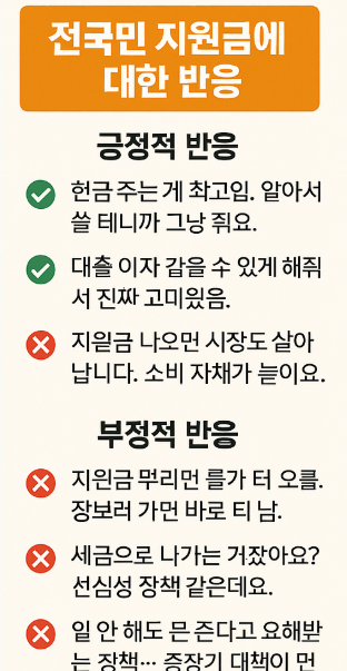 - 🟡 “현금이든 쿠폰이든, 아이·노인·1인가구 맞춤형이면 좋을 듯.”