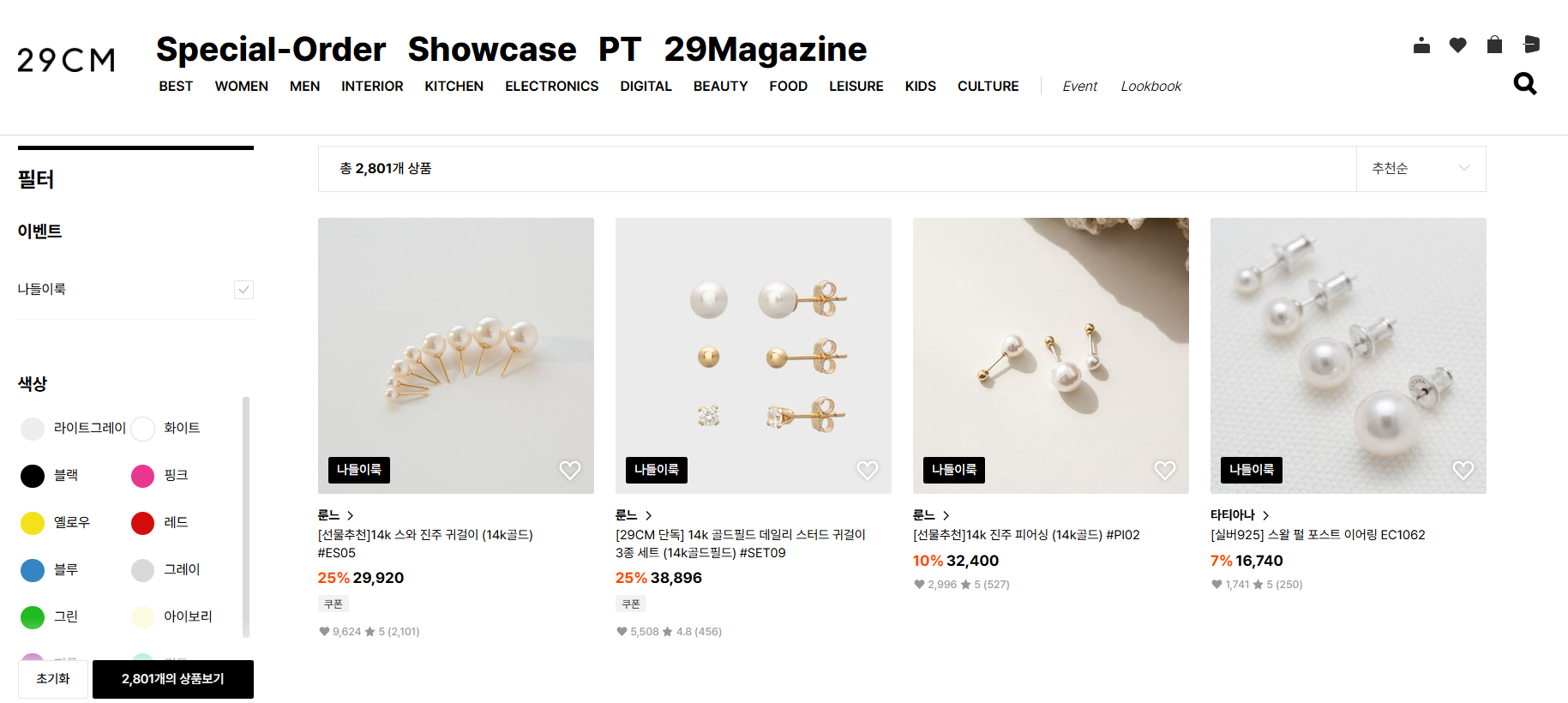 - 귀걸이: 진주 드롭 이어링 (유사 제품: 29CM / 안다르 액세서리)