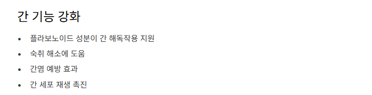 간 기능 개선, 숙취 해소, 간염 예방 등에 도움을 줄 수 있습니다.