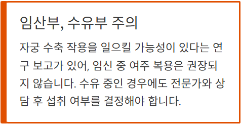 - 자궁 수축 작용 가능성이 있다는 보고가 있어
