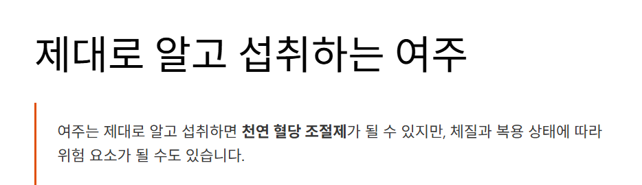 - 당뇨 초기 환자에게 식후 혈당 조절용으로 섭취 추천